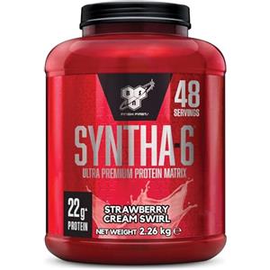 BSN Syntha 6, Proteine in Polvere di Altissima Qualità per la Crescita e il Recupero Muscolare, Alto Apporto Proteico e Basso Contenuto di Zuccheri, Gusto Crema alle Fragole, 48 Porzioni, 2.26 kg