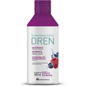 Montefarmaco OTC Pancia Piatta Dren 500 ml - Integratore Drenante Gusto Frutti di Bosco, Senza Glutine e Lattosio