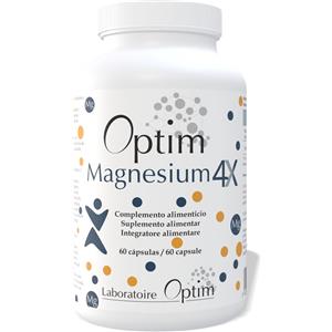 BIONOTO SPRL Optim Magnesium 4X - Integratore Alimentare con Bisglicinato, Citrato, Malato e Acetiltaurinato di Magnesio - 60 Capsule
