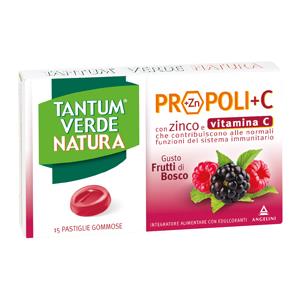 ANGELINI SpA TANTUM VERDE NATURA PROPOLI+C CON ZINCO E VITAMINA C 15 PASTIGLIE GOMMOSE GUSTO FRUTTI DI BOSCO