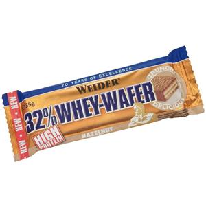 Weider Barretta Wafer Nocciola 35 g - 32% Proteine, Ricoperta di Cioccolato al Latte