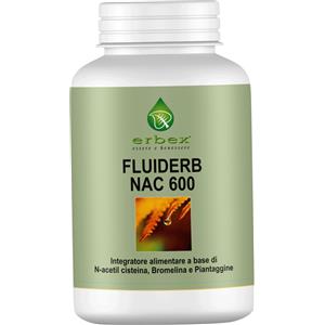 ERBEX FLUIDERB NAC 600 mg - Integratore con N-Acetilcisteina, Bromelina e Piantaggine, 30 Capsule per il Benessere delle Vie Respiratorie
