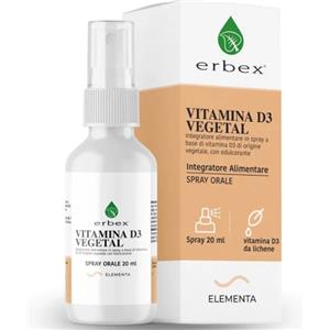 ERBEX Vitamina D3 Vegetal Spray 20ml - Supporto per Ossa, Denti e Sistema Immunitario, 100% Vegetale, Vegan