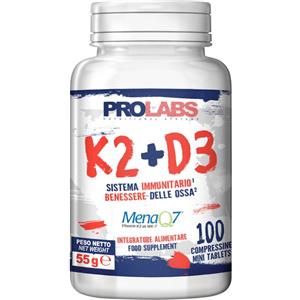 Prolabs K2 D3 - Integratore Alimentare con Vitamina D3 (2000 UI) e K2 (75 mcg) per Ossa e Sistema Immunitario - 100 Compresse