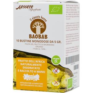 AESSERE Baobab Aessere Polpa Bio - Integratore Alimentare 10 Bustine da 5g con Fibre e Vitamina C