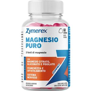 ZYMEREX MAGNESIO PURO - 60 GOMMOSE con Citrato, Gluconato e Pidolato per Stanchezza e Sistema Nervoso, Senza Zuccheri e Glutine, Adatto a Vegani
