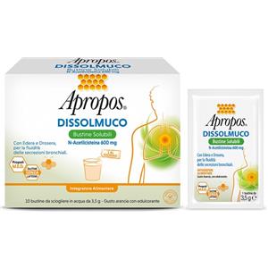 Apropos Dissolmuco 10 Bustine Solubili - Integratore con N-Acetilcisteina 600 mg e Propoli per la Fluidità delle Secrezioni Bronchiali in Integratori e Vitamine