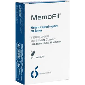 MemoFil - Integratore nootropico per memoria e concentrazione con citicolina Cognizyn, vitamina B6, bacopa e zinco - 30 capsule