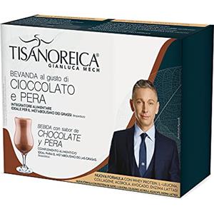 Gianluca Mech | Tisanoreica Bevanda Proteica al Gusto di Cioccolato e Pera, 4 x 29g, Integratore Alimentare Keto, 342kcal per 100g