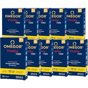 Omegor Omega3 2000 mg ad Alto Dosaggio per 2 Capsule - Omega 3 IFOS 5 Stelle - OMEGOR Vitality 1000 - Fornitura per 5 mesi - 30cps (10 Confezioni)