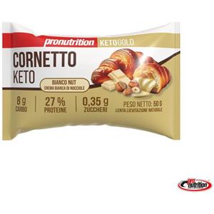 PRO NUTRITION Cornetto Keto Bianco Nut - Cornetto Chetogenico da 50 gr con Ripieno di Crema al Cioccolato Bianco e Nocciole Senza Zucchero