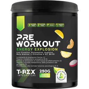 T-Rex Integratori Pre Workout Tropical - Polvere Energizzante con Creatina, BCAA e Vitamine, 250 g