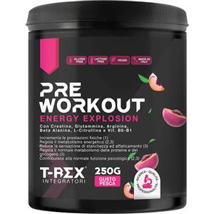 T-Rex Integratori Pre Workout - Polvere Energizzante senza Caffeina con Creatina, Aminoacidi e Vitamine - 250 g (Pesca)
