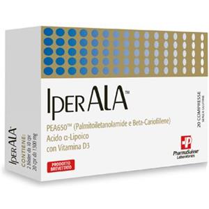 P PharmaSuisse Laboratories IperAla® Integratore Alimentare antiossidante per la funzionalità del sistema nervoso - A base di PEA650™, Acido Alfa-Lipoico e Vitamina D3-20 compresse