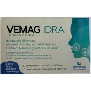 VEMAG Idra Bocca & Gola Menta - Integratore Alimentare con Erisimo, Aloe Vera e Acido Ialuronico - 20 Compresse in Integratori e Vitamine