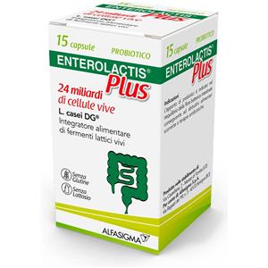 ALFASIGMA SpA Enterolactis Plus Capsule, Integratore Alimentare con Fermenti lattici, probiotici L,Casei DG, 24 Miliardi Cellule Vive, Senza Glutine e Lattosio, 15 Capsule