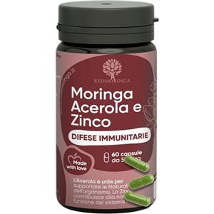 RedMoringa Integratore Difese Immunitarie - Moringa Bio, Acerola e Zinco, 100% Naturale, 60 Capsule