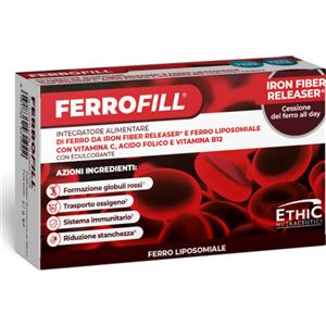 EthicSport Ferrofill - Integratore di Ferro a Rilascio Modulato con Vitamina C, Acido Folico e B12 - 30 Compresse