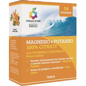 Optima Colours Of Life Magnesio e Potassio 100% Citrati con Vitamina C Naturale - 14 Stickpack