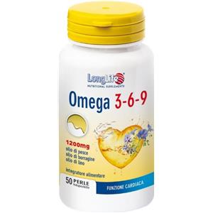 LongLife Omega 3-6-9 1200 mg - Integratore in Perle per il Controllo dei Lipidi Plasmatici con Olio di Pesce, Borragine e Lino