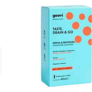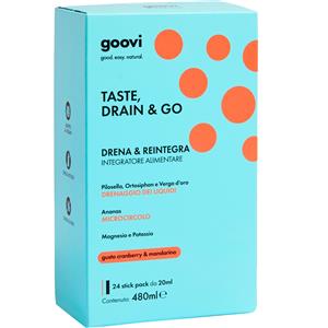 Goovi Taste, Drain & Go Drena & Reintegra Cranberry e mandarino 24x 20 ml Integratore Drenante e Snellente da Bere Stick