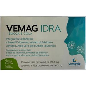 VEMAG Idra Bocca & Gola Menta - Integratore Alimentare con Erisimo, Aloe Vera e Acido Ialuronico - 20 Compresse
