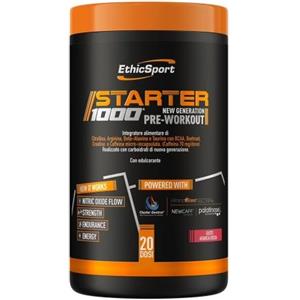 EthicSport Starter 1000 - Integratore Pre-Workout 400g Gusto Arancia Rossa con Citrullina, Arginina, Creatina e Caffeina
