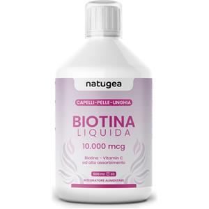 Natugea Biotina Liquida 500 ml - Integratore per Capelli e Pelle con 10.000 mcg di Biotina e Vitamina C