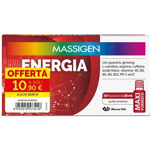 Marco Viti Massigen Energia - Integratore Tonico in 10 Flaconcini da 25 ml con Ginseng e Guaranà