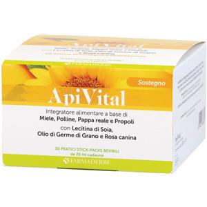 Farmaderbe Apivital - Integratore Alimentare 15 Stick Pack da 20ml con Miele, Polline, Propoli e Pappa Reale