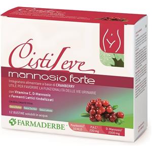FARMADERBE Cistileve Mannosio Forte - Integratore per Vie Urinarie con D-mannosio, Cranberry e Vitamina C, 12 Bustine