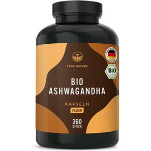 TRUE NATURE Ashwagandha Bio - 360 Capsule Vegane con Alto Dosaggio di 2600 mg al giorno