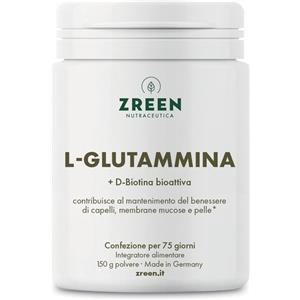Zreen L-Glutammina Polvere 150 g - Integratore Alimentare 100% Vegano Senza Coloranti e Conservanti