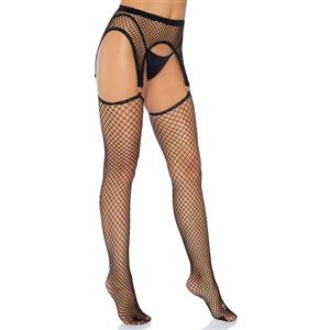 Leg Avenue Calze a Rete Industriali con Reggicalze O-ring - Nero, Taglia Unica