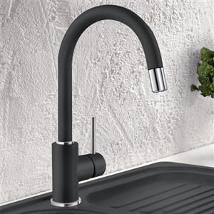 Blanco MIDA-S Miscelatore da Cucina Nero in SILGRANIT con Canna Alta, Doccetta Estraibile e Girevole