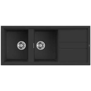 Elleci Best 500 LGB50040 Lavello da Incasso 2 Vasche con Gocciolatoio Reversibile in Granitek Nero 116 x 51 cm