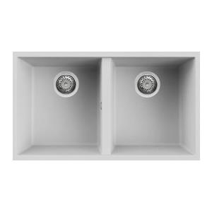 Elleci Quadra 350 Lavello da Incasso 2 Vasche 79x50 cm in Granitek Bianco con Sifone Salvaspazio e Accessori Inclusi