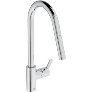 Ideal Standard Ceralook Miscelatore da Cucina Monocomando con Bocca Alta Orientabile ed Estraibile, Doccetta a 2 Funzioni, Cromato in Lavelli e Rubinetti