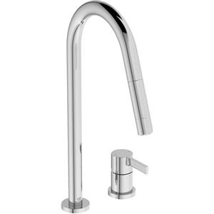 Ideal Standard Ceralook Miscelatore da Cucina Monocomando con Bocca Alta Orientabile ed Estraibile, Doccetta a 2 Funzioni, Cromato