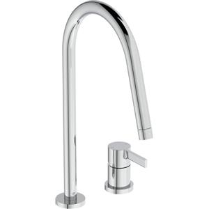 Ideal Standard Gusto Miscelatore Cucina Monocomando a 2 Fori, Bocca Alta Orientabile 360°, Aeratore Autopulente, Cartuccia FirmaFlow