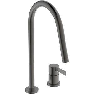 Ideal Standard Gusto Miscelatore Monocomando per Lavello da Cucina a Due Fori, Bocca Alta Orientabile, Aeratore in Silicone Autopulente, Colore Magnetic Grey