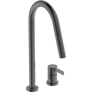 Ideal Standard Gusto - Miscelatore monocomando per lavello da cucina a 2 fori, bocca alta tubolare con doccetta estraibile e 2 modalità di getto, colore Magnetic grey