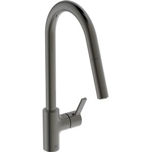 Ideal Standard Gusto Miscelatore Monocomando da Cucina con Bocca Alta Tubolare, Estraibile e Orientabile, Due Funzioni, Magnetic Grey