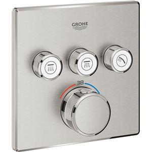 Grohe Grohtherm SmartControl Miscelatore Doccia Termostatico a Parete in Supersteel - Attivazione a Pulsante, Adatto per 3 Utenze