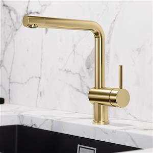 BLANCO Rubinetto da Cucina LINUS Satin GOLD - Design Minimalista, Altezza 28,2 cm, Angolo di Rotazione 360°, Getto Perlato