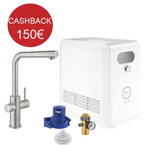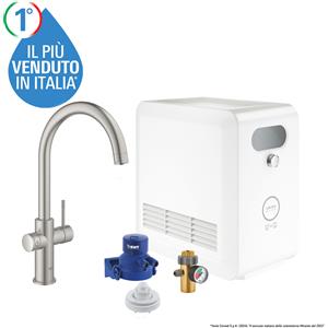 GROHE Blue Pure Minta Rubinetto da Cucina con Sistema di Filtrazione dell'Acqua, Doccetta Estraibile, Finitura Supersteel Satinato, Cod. 30601DC0