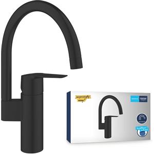 GROHE QuickFix Start Miscelatore per Lavello da Cucina 1 Leva, Bocca Alta a U, Area Girevole 150°, Cartuccia Ceramica 28 mm, Attacchi 3/8", Installazione QuickMount, 310 mm, Finitura Nero Opaco in Lavelli e Rubinetti