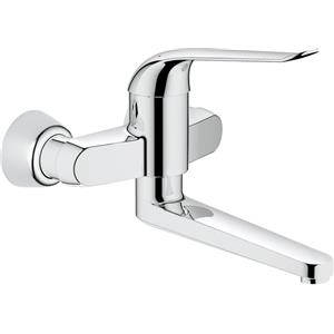 Grohe 32778000 Euroeco Special Miscelatore Monocomando per Lavabo a Parete Cromo, Sporgenza 205 mm, Tecnologia EcoJoy e SilkMove