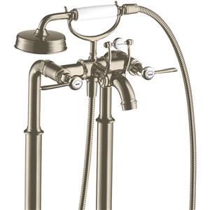 Hansgrohe Montreux Rubinetto Vasca a Pavimento in Nichel Spazzolato con Miscelatore a Due Maniglie e Doccia RainAir
