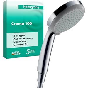 Hansgrohe Croma 100 Doccetta per doccia con 4 tipi di getto, diametro 100 mm, risparmio idrico 9 l/min, funzione anticalcare, cromo in Lavelli e Rubinetti